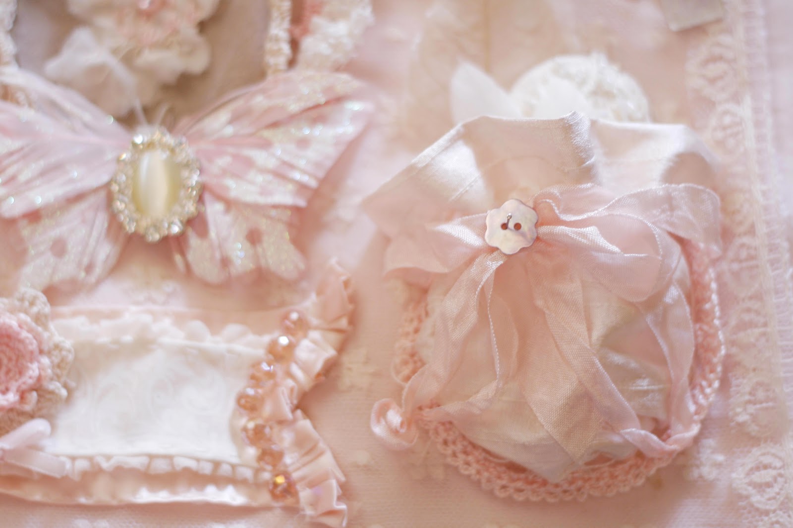 i also made her a little dreamcatcher, knotting tulle around a wire base & attaching a little doily centre and rose quartz pieces